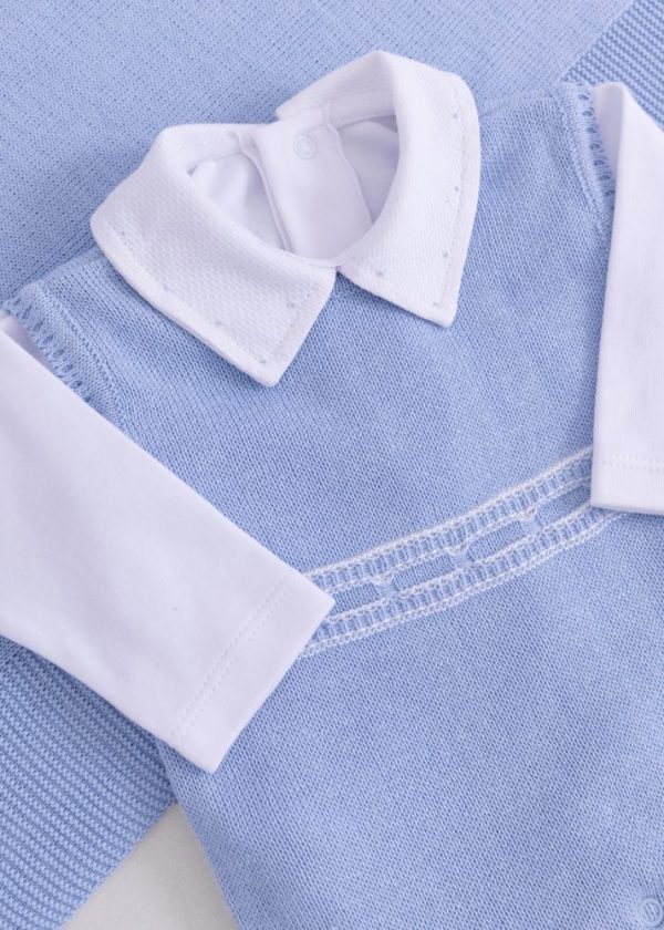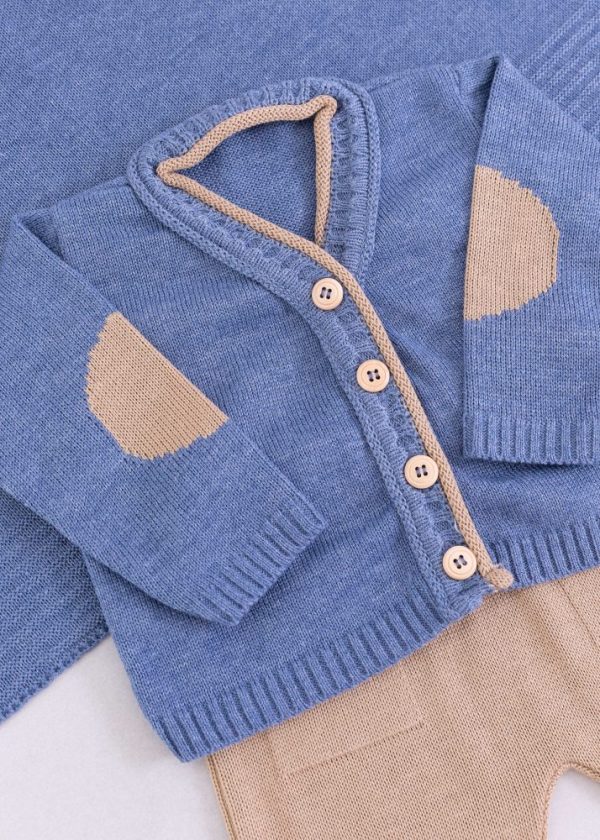 Saída Maternidade Bebê em Tricô Azul Jeans – 5 peças