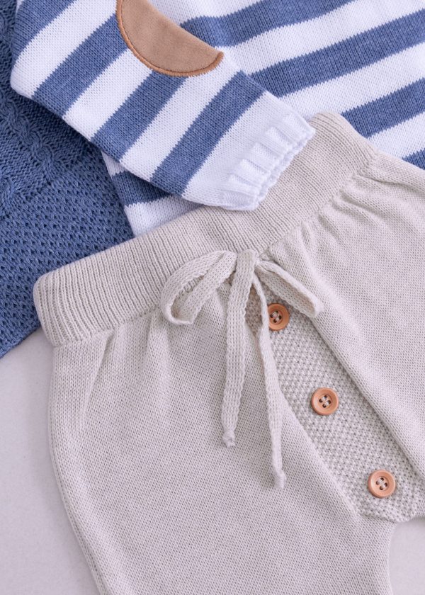 Saída Maternidade Bebê em Tricô Listrado Azul Jeans – 5 peças