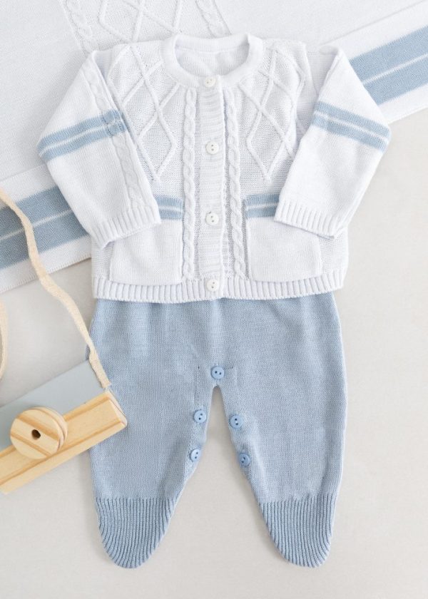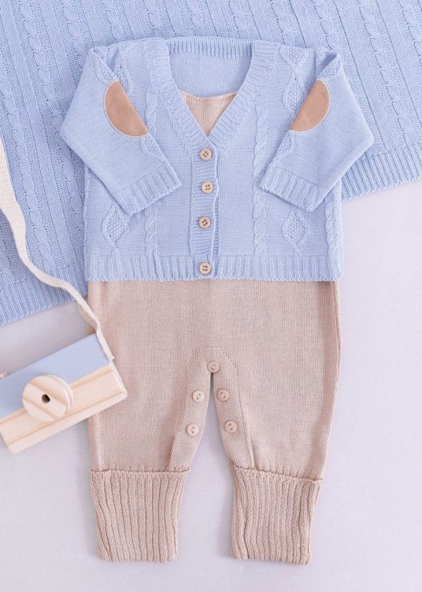 Saída Maternidade Bebê em Tricô Azul Jeans – 5 peças