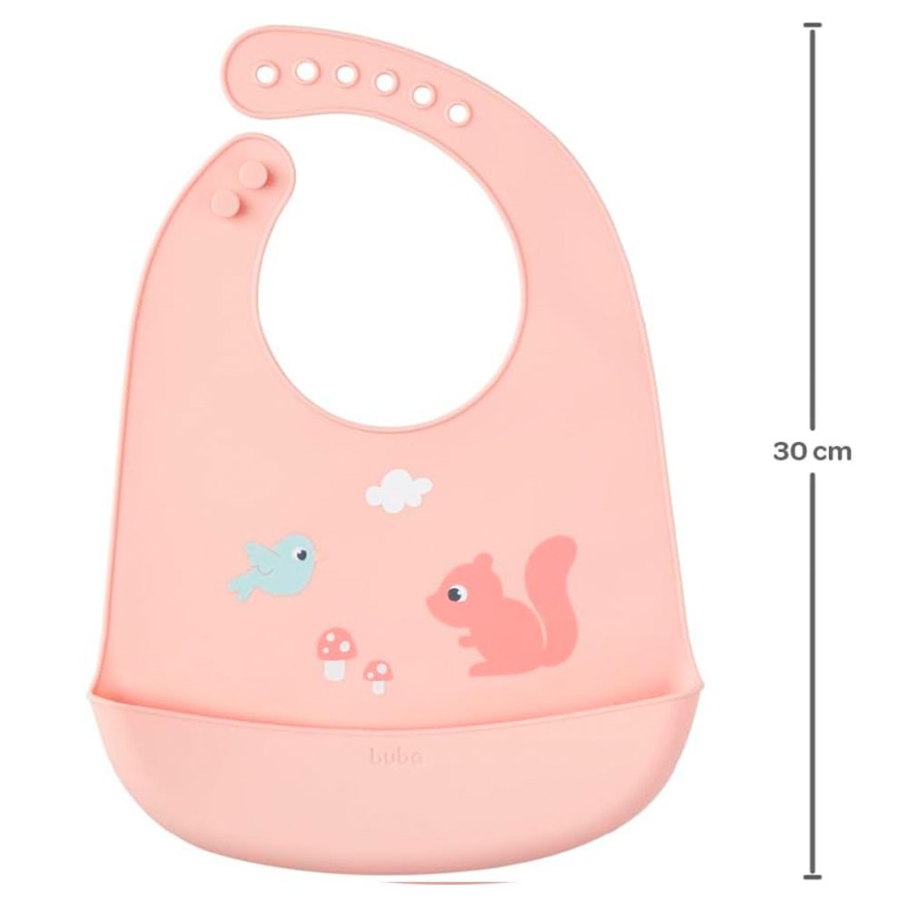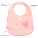 Seu bolso pega migalhas é perfeito para evitar sujeiras, protegendo a roupinha do bebê e minimizando a bagunça. Além disso, o fecho com botões ajustáveis permite um encaixe confortável no pescoço da criança, acompanhando o crescimento dos pequenos a partir dos 3 meses.