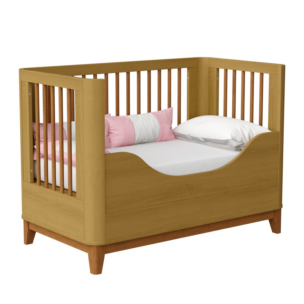 O Berço Boom Slim Classic foi pensado para acompanhar o crescimento da criança com segurança e elegância. Conta com cantos arredondados e grades com palitos em madeira, que trazem um visual leve e sofisticado. Possui 3 posições de regulagem do estrado, permitindo ajustes conforme o desenvolvimento do bebê, além de acabamento sem parafusos aparentes. Acompanha barra para transformação em mini cama, prolongando o uso do móvel. Seus pés em madeira garantem estabilidade e um toque natural ao ambiente.