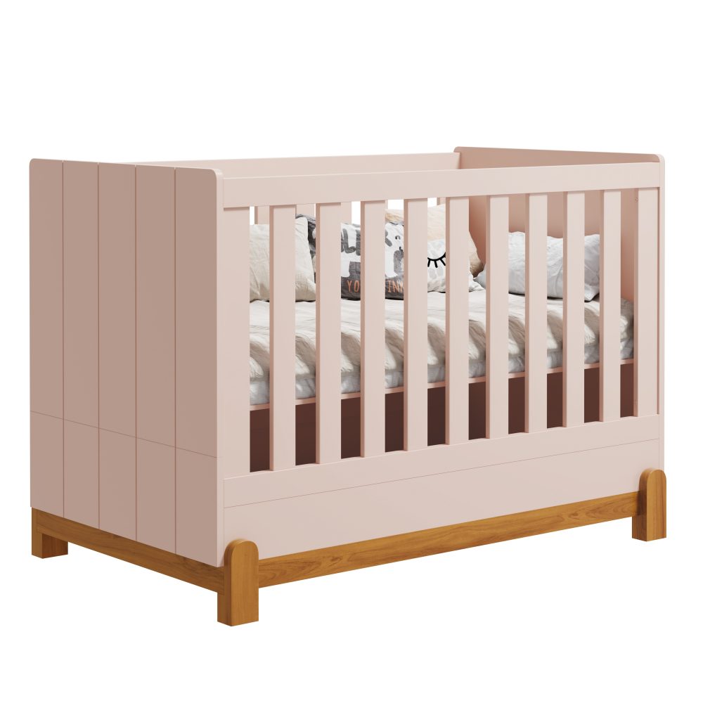 O Berço Lótus Friso, segue o padrão americano, oferecendo segurança, conforto e versatilidade para o dia a dia do bebê. Possui 3 posições de regulagem do estrado, permitindo ajustes conforme o crescimento da criança. Seu acabamento é clean, sem parafusos aparentes, garantindo um visual moderno e mais seguro. Um dos grandes diferenciais é a possibilidade de transformação em mini cama, acompanhando as fases de desenvolvimento do bebê. Para completar, conta com pés em madeira, que adicionam charme e sofisticação ao ambiente.