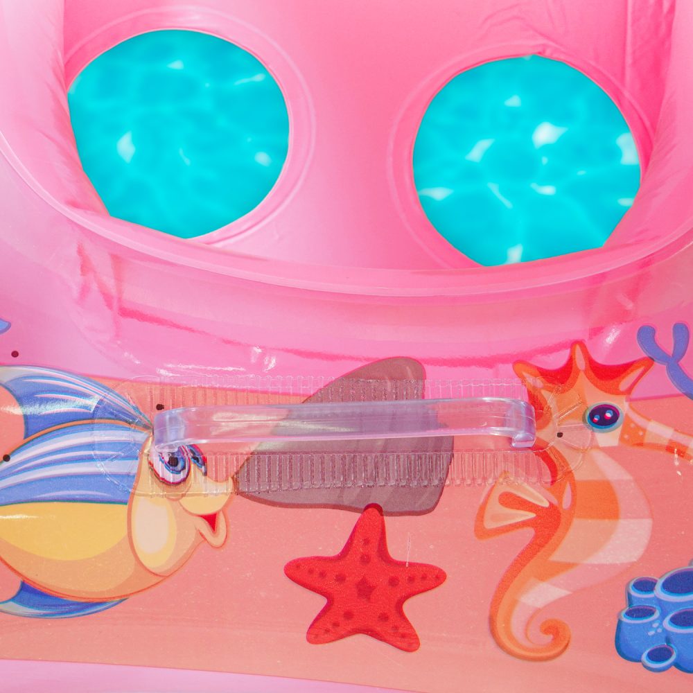 Seu design colorido e estampado estimula o interesse visual, enquanto a estrutura inflável oferece estabilidade e apoio. Perfeita para os primeiros contatos do bebê com a piscina, sempre com supervisão de um adulto.