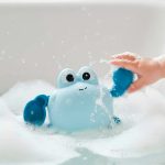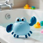 Basta girar a manivela ou acionar o mecanismo para que o caranguejo mova suas patinhas e nade pela água, criando um movimento super divertido na banheira ou piscina. Feito em material resistente, leve e seguro para crianças, ele proporciona entretenimento enquanto estimula a coordenação motora e a curiosidade.