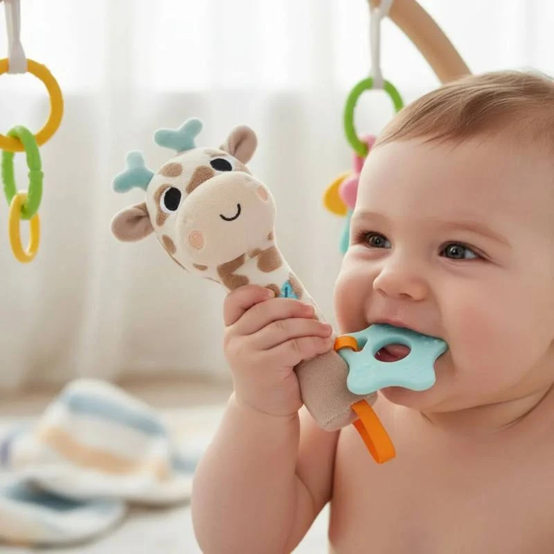 Além de divertir, o mordedor embutido é ideal para aliviar o desconforto dos primeiros dentinhos, proporcionando bem-estar e tranquilidade ao bebê durante a fase de dentição.