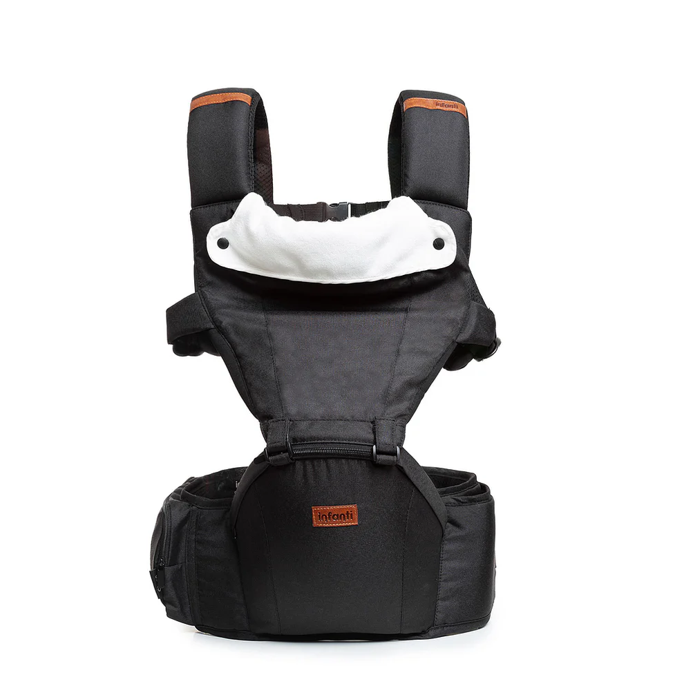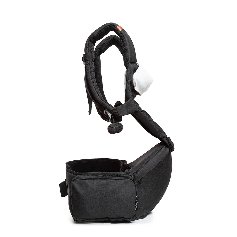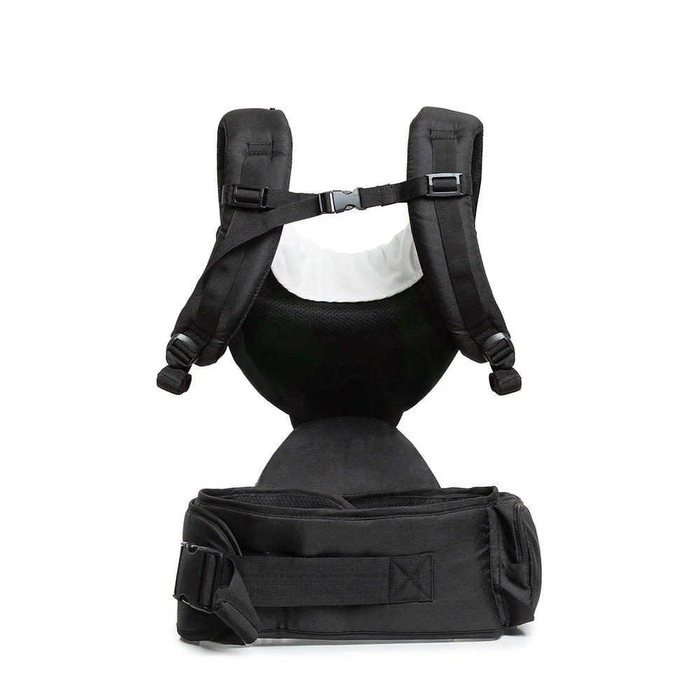 O banquinho integrado ajuda a reduzir a sensação de peso, promovendo melhor postura e alinhamento da coluna dos pais. Possui faixa abdominal ajustável com velcro e fivela, alças acolchoadas e tecido respirável, garantindo conforto tanto para quem carrega quanto para o bebê.