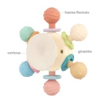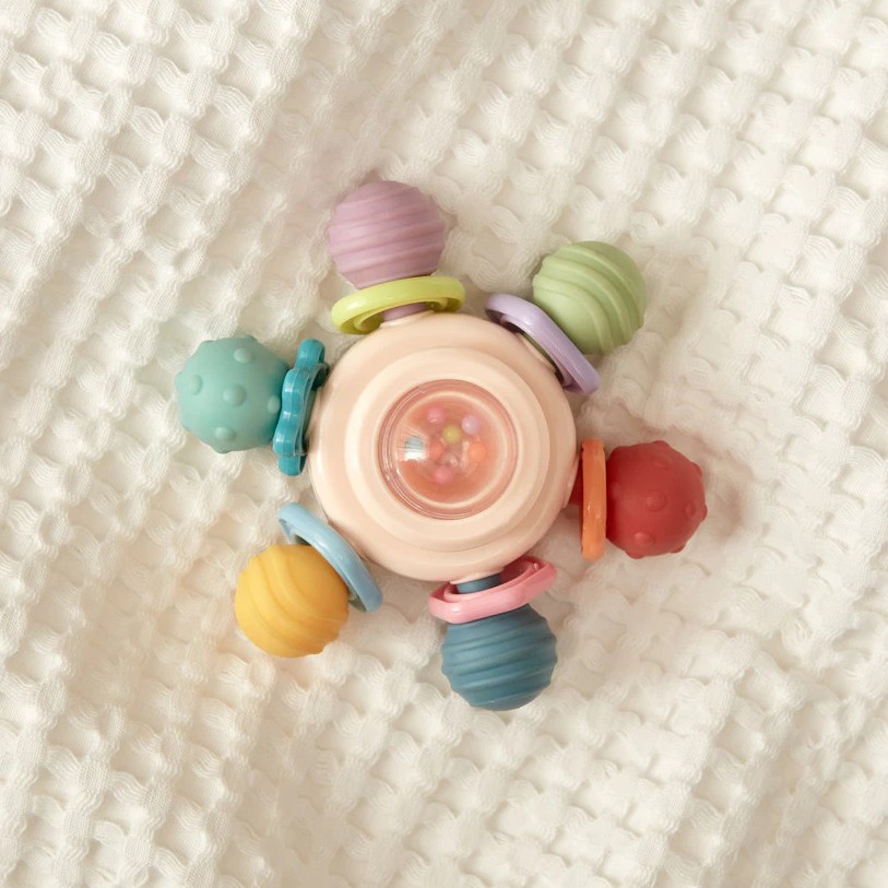Ao girar e movimentar, o brinquedo produz sons suaves que ajudam no desenvolvimento auditivo, enquanto as diferentes formas e relevos estimulam o tato e a coordenação motora. Ideal para as mãozinhas pequenas, é leve, fácil de segurar e perfeito para acompanhar o crescimento do bebê.