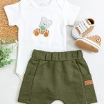 O Conjunto Automobile Iaze traz conforto, estilo e fofura para o dia a dia do bebê. Composto por um body bege em suedine macio, ele possui gola envelope para facilitar na hora de vestir e um bordado encantador de ursinho dirigindo um carrinho — detalhe que dá um toque lúdico e divertido à peça.