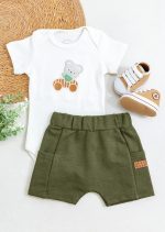 O Conjunto Automobile Iaze traz conforto, estilo e fofura para o dia a dia do bebê. Composto por um body off em suedine macio, ele possui gola envelope para facilitar na hora de vestir e um bordado encantador de ursinho dirigindo um carrinho — detalhe que dá um toque lúdico e divertido à peça.