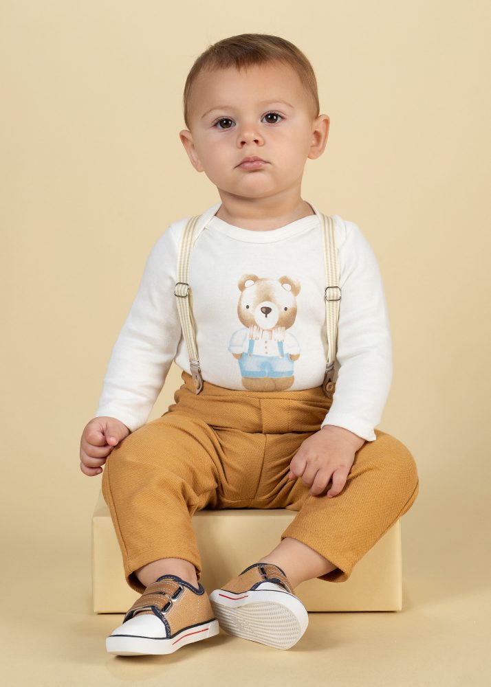 O body é confeccionado em algodão macio, ideal para a pele sensível do bebê. Possui gola envelope, facilitando na hora de vestir, e botões de pressão entrepernas, garantindo praticidade nas trocas. O destaque fica por conta da estampa no peito de urso, que traz um toque lúdico e super fofo.