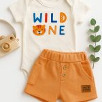 O conjunto “Wild One” traz conforto, estilo e diversão para o look do seu bebê. O body em tom creme é confeccionado em malha macia e respirável, com gola envelope que facilita vestir sem incomodar e fechamento entrepernas para trocas práticas. A estampa moderna com leãozinho e letras coloridas deixa a peça super fofa e cheia de personalidade.