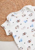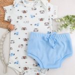 Conjunto super delicado e confortável, perfeito para deixar o bebê estiloso em qualquer momento do dia. O body possui estampa encantadora de cachorrinhos em tons suaves, trazendo charme e fofura ao visual. Feito em tecido macio canelado, com abertura entre as perninhas para facilitar a troca. Acompanha tapa fralda azul clarinho com cós elástico, proporcionando conforto e liberdade para os movimentos do bebê. Ideal para dias quentes, passeios e momentos em família.