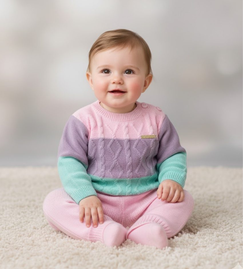 Composto por casaco que traz um design sofisticado com trama em tranças na parte frontal, além de uma combinação suave de cores em rosa e verde menta que deixa o look ainda mais especial e moderno. Conta com botões funcionais no ombro, que facilitam na hora de vestir, além da calça que complementa o conjunto com modelagem confortável, cós com elástico e ajuste em cordão, garantindo praticidade e um encaixe perfeito no corpinho do bebê.