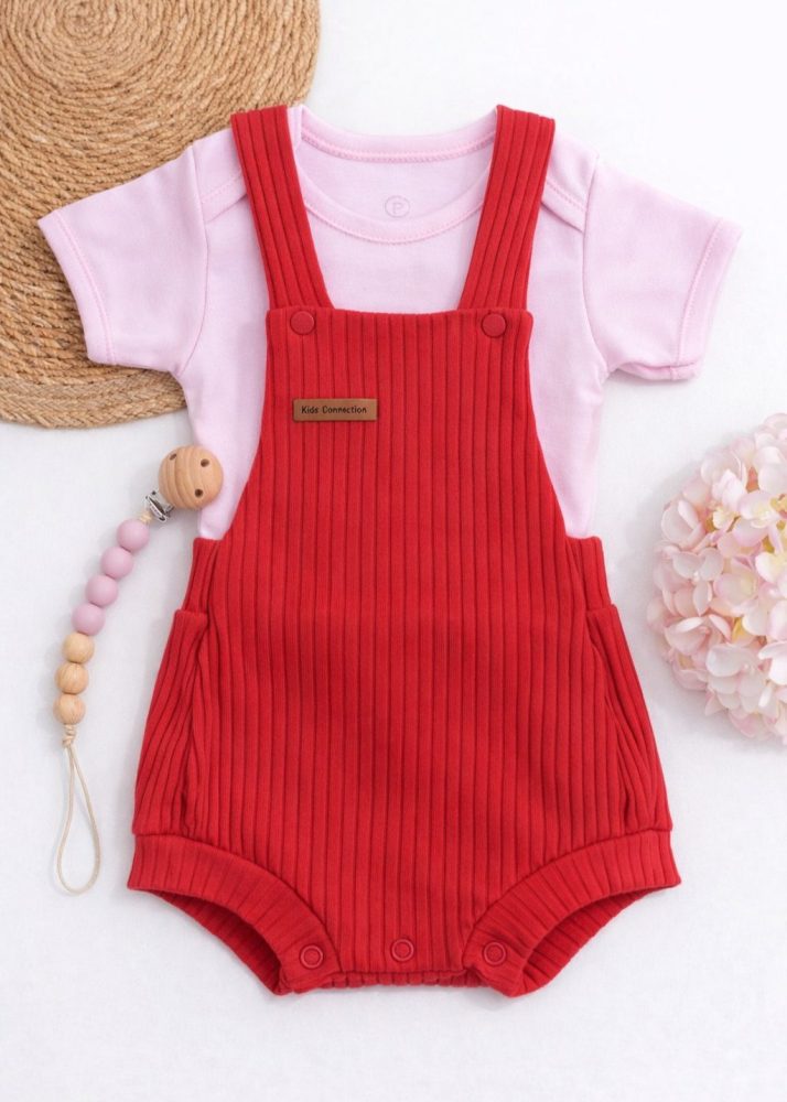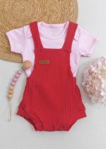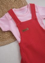 O Conjunto Jardineira Canelada Cereja + Body Rosa é a escolha perfeita para unir conforto, estilo e praticidade no dia a dia da sua pequena.