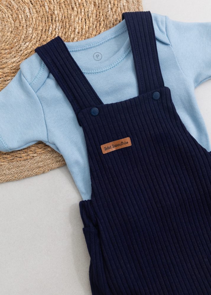 O Conjunto Jardineira Canelada Marinho+ Body Azul Bebê é a escolha perfeita para unir conforto, estilo e praticidade no dia a dia do seu pequeno.