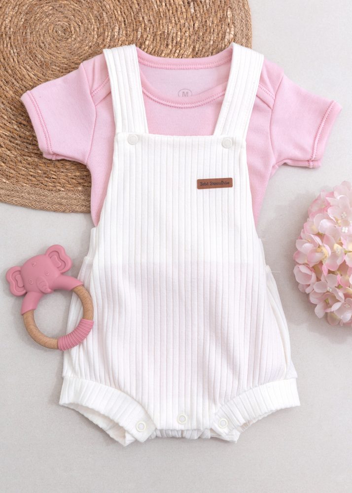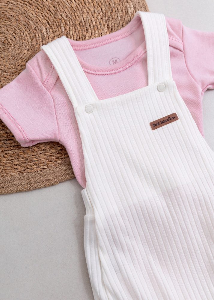 O Conjunto Jardineira Canelada Off + Body Rosa é a escolha perfeita para unir conforto, estilo e praticidade no dia a dia da sua pequena.