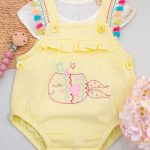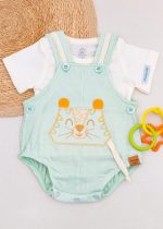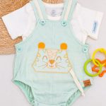 O conjunto romper verde é a escolha perfeita para um look alegre, delicado e super confortável para a bebê. Confeccionada em tecido texturizado leve, ela possui bordado em leão e alças com viés e botões para fechamento, cheio de detalhes encantadores.