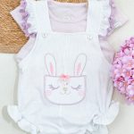 A modelagem é confortável, com elástico suave nas perninhas e botões de pressão no entrepernas, facilitando a troca. Acompanha camiseta em malha macia que garante aconchego para a bebê durante todo o dia.