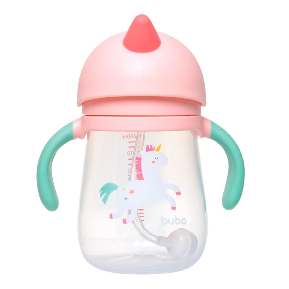 O Copo com Canudo Magic Unicórnio Buba é ideal para auxiliar o bebê na fase de transição da mamadeira para o copo, promovendo autonomia e conforto na hora de beber. Possui canudo em silicone macio e um dispositivo interno inteligente, que acompanha o líquido e ajuda a evitar a ingestão de ar, reduzindo desconfortos.