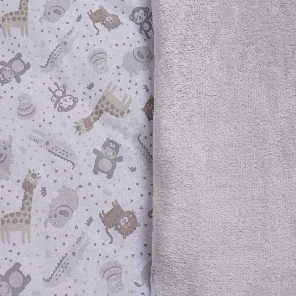 Edredom de Berço Dupla Face Estampado e Peluciado - Cinza