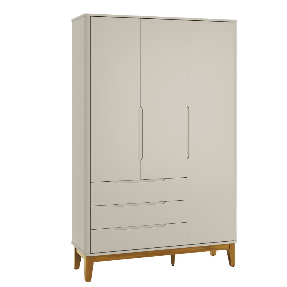 O Roupeiro Boom 3 Portas é fabricado em 100% MDF, garantindo resistência e excelente acabamento. Possui 3 portas com puxadores embutidos, cantos arredondados e acabamento sem parafusos aparentes, proporcionando mais segurança e um visual clean. Conta com cabideiro metálico para melhor organização das roupas, 3 gavetas com corrediças telescópicas que permitem abertura suave e total, e pés em madeira pinus, que adicionam charme e estabilidade ao móvel.