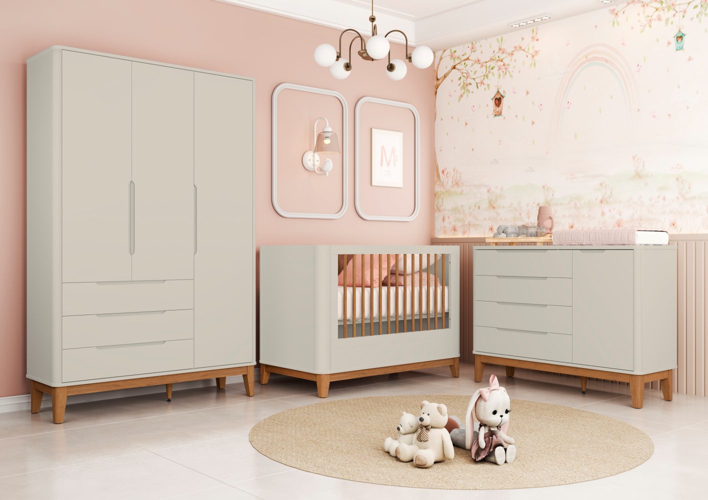 O Berço Boom Plus Classic foi pensado para acompanhar o crescimento da criança com segurança e elegância. Conta com cantos arredondados, grades em palitos de madeira na lateral, que trazem um visual leve e sofisticado. Possui 3 posições de regulagem do estrado, permitindo ajustes conforme o desenvolvimento do bebê, além de acabamento sem parafusos aparentes. Acompanha barra para transformação em mini cama, prolongando o uso do móvel. Seus pés em madeira garantem estabilidade e um toque natural ao ambiente.