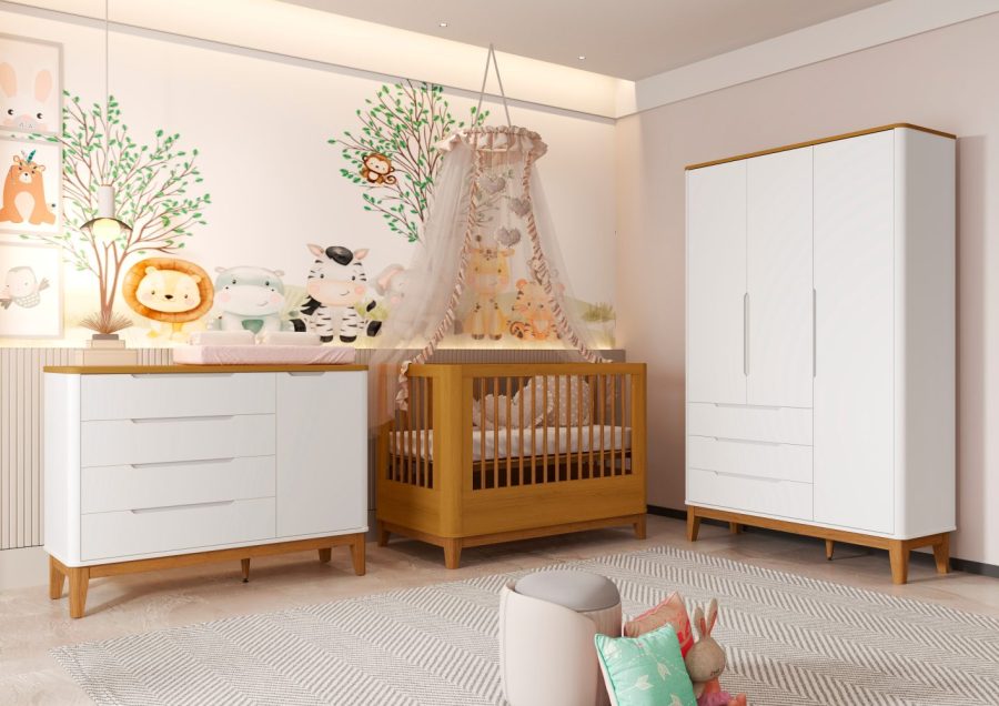 O Berço Boom Slim Classic foi pensado para acompanhar o crescimento da criança com segurança e elegância. Conta com cantos arredondados e cabeceiras com palitos em madeira, que trazem um visual leve e sofisticado. Possui 3 posições de regulagem do estrado, permitindo ajustes conforme o desenvolvimento do bebê, além de acabamento sem parafusos aparentes. Acompanha barra para transformação em mini cama, prolongando o uso do móvel. Seus pés em madeira garantem estabilidade e um toque natural ao ambiente.