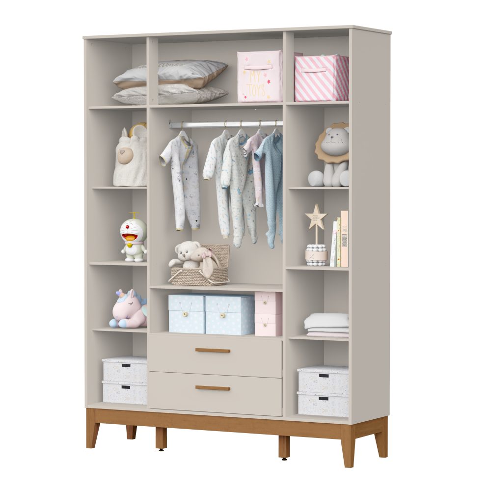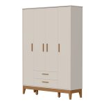 O Roupeiro Flip é produzido em 100% MDF, oferecendo resistência, durabilidade e um excelente acabamento. Com 4 portas e gavetas, proporciona ótima divisão interna para organizar roupas e acessórios com praticidade. Possui corrediças telescópicas que garantem abertura suave, puxadores em MDF revestido que valorizam o design e pés em madeira, que oferecem estabilidade e facilitam a limpeza.