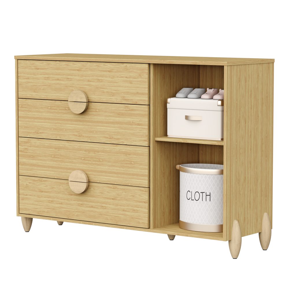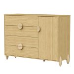 Cômoda Sapateira Gracia é produzida em 100% MDF, oferecendo resistência e durabilidade. Possui 4 gavetas amplas com corrediças telescópicas, 1 porta com dobradiça com amortecedor, além de puxadores e pés em madeira natural, que trazem um visual delicado ao móvel. Conta com kit divisor na primeira gaveta para melhor organização e sistema anti-tombamento, garantindo mais segurança para o ambiente infantil. .