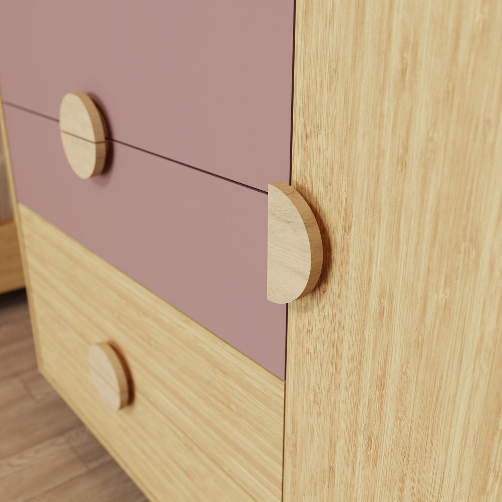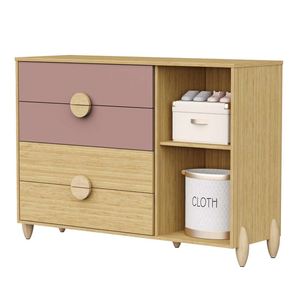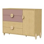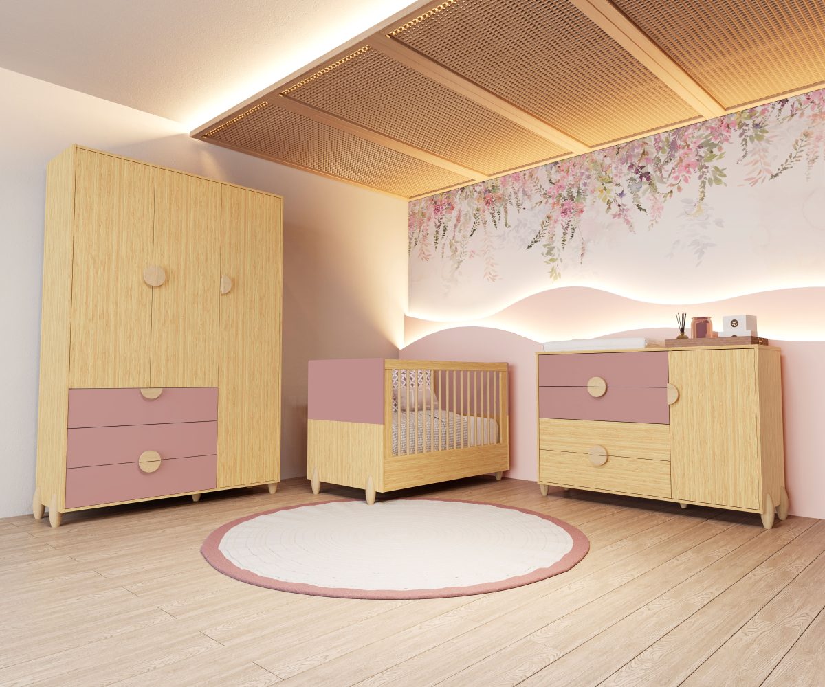 Cômoda Sapateira Gracia é produzida em 100% MDF, oferecendo resistência e durabilidade. Possui 4 gavetas amplas com corrediças telescópicas, 1 porta com dobradiça com amortecedor, além de puxadores e pés em madeira natural, que trazem um visual delicado ao móvel. Conta com kit divisor na primeira gaveta para melhor organização e sistema anti-tombamento, garantindo mais segurança para o ambiente infantil. .