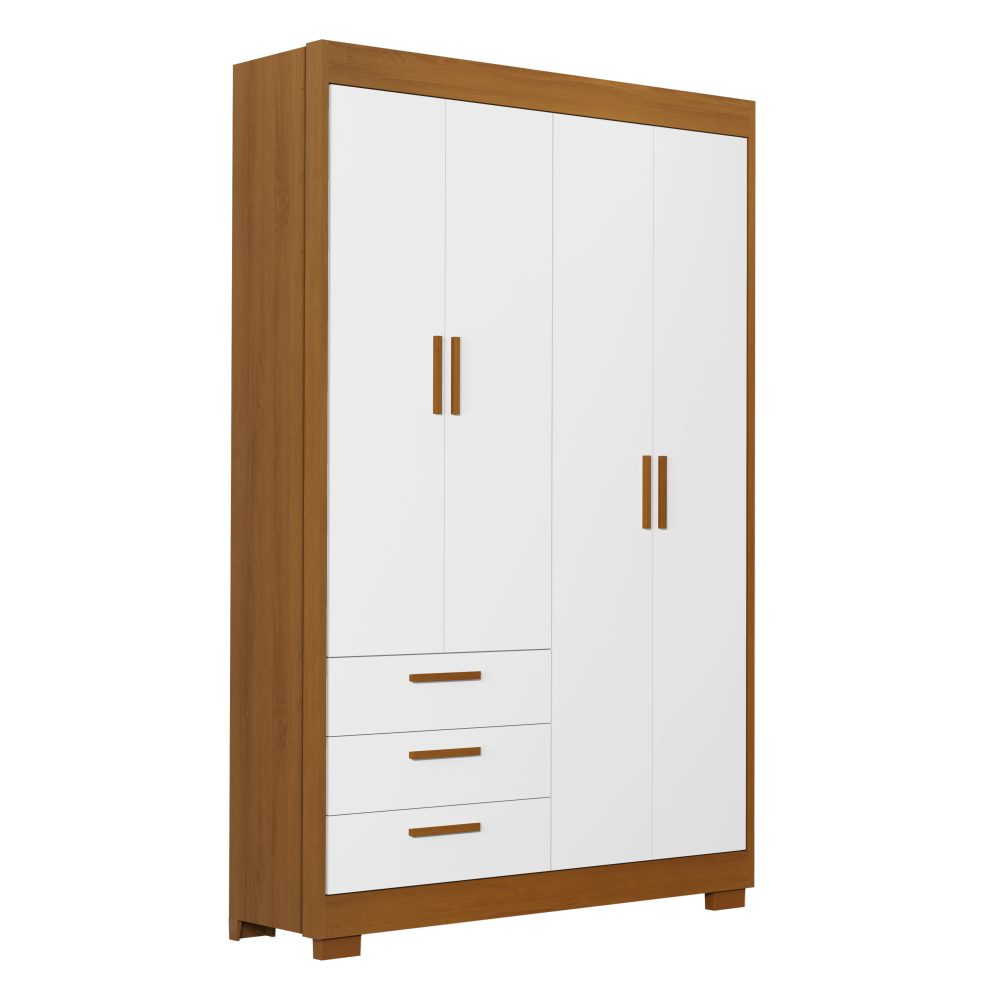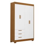 O Roupeiro Zaki Reller é produzido em 100% MDF, oferecendo resistência, durabilidade e um excelente acabamento. Com 4 portas e gavetas, proporciona ótima divisão interna para organizar roupas e acessórios com praticidade. Possui corrediças telescópicas que garantem abertura suave, puxadores em MDF revestido que valorizam o design e pés em PVC, que oferecem estabilidade e facilitam a limpeza.