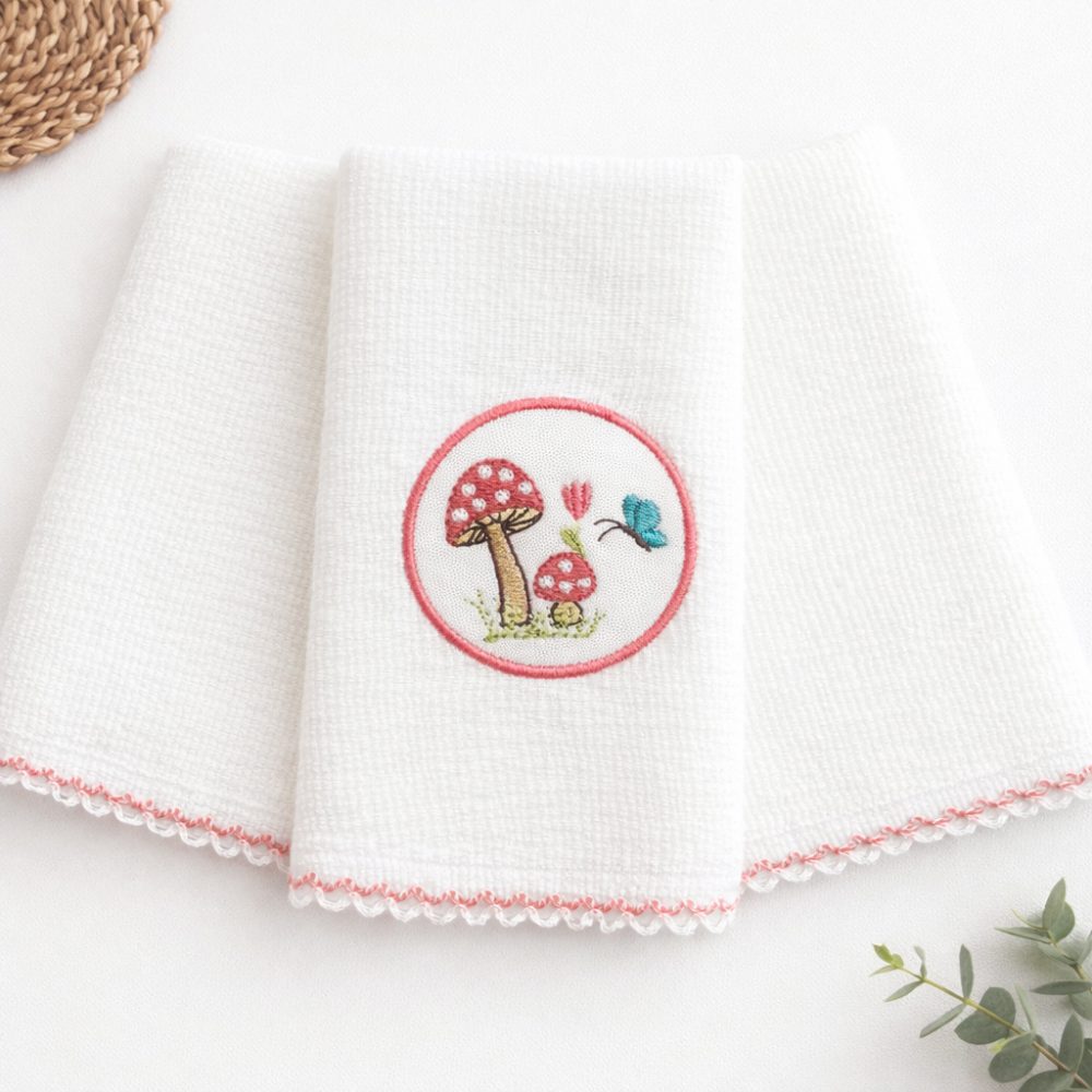 Kit Fralda de Boca Premium Bordada – Cogumelo