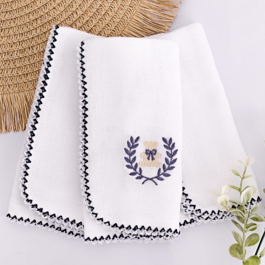 Kit Fralda de Boca Premium Bordada – Urso Rei Azul Marinho