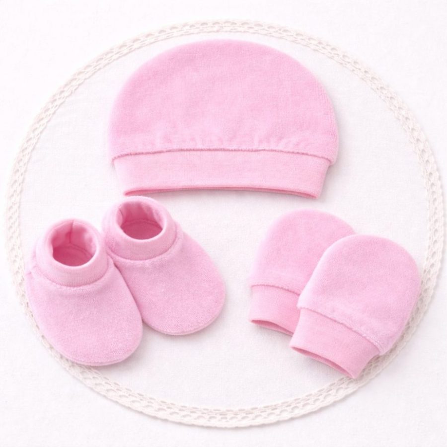 Kit Maternidade Bebê Plush Rosa com Touca, Luvas e Sapatinhos
