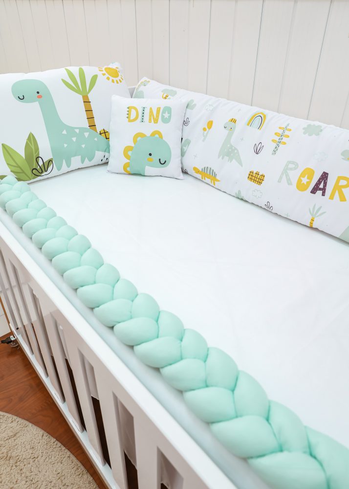 O Kit Protetor de Berço Dinossauro foi desenvolvido para oferecer aconchego, segurança e um toque de delicadeza ao quartinho da bebê. Com estampas exclusivas de dinossauro em tons claros, o kit cria um ambiente suave, divertido e encantador.
