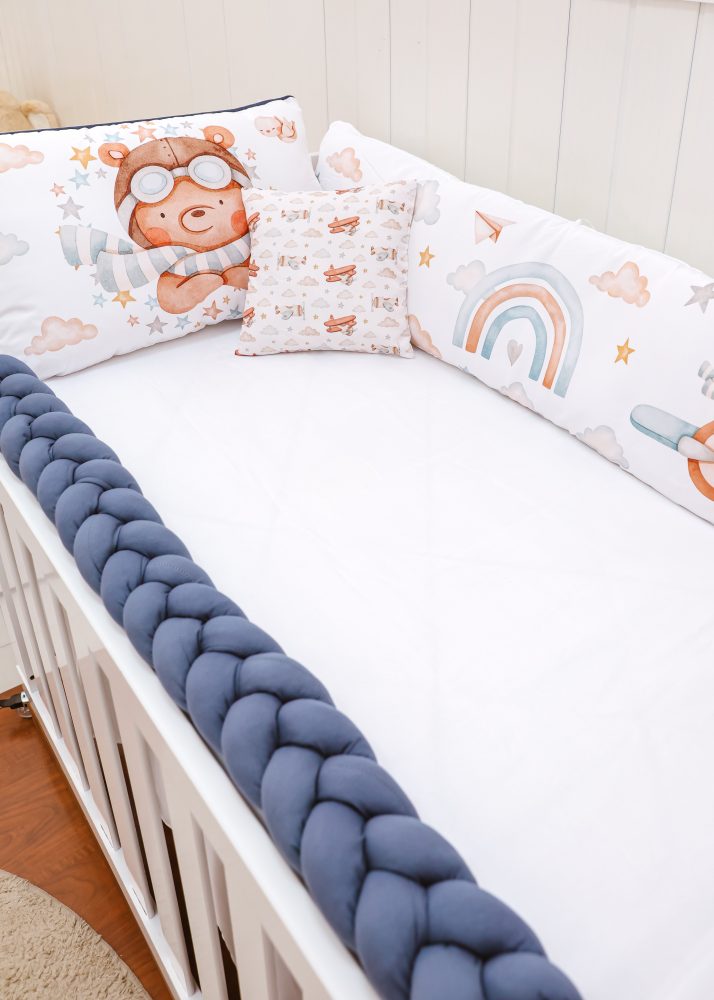 O Kit Protetor de Berço Urso Aviado foi desenvolvido para oferecer aconchego, segurança e um toque de delicadeza ao quartinho da bebê. Com estampas exclusivas de urso em estilo aquarela, o kit cria um ambiente suave, divertido e encantador.