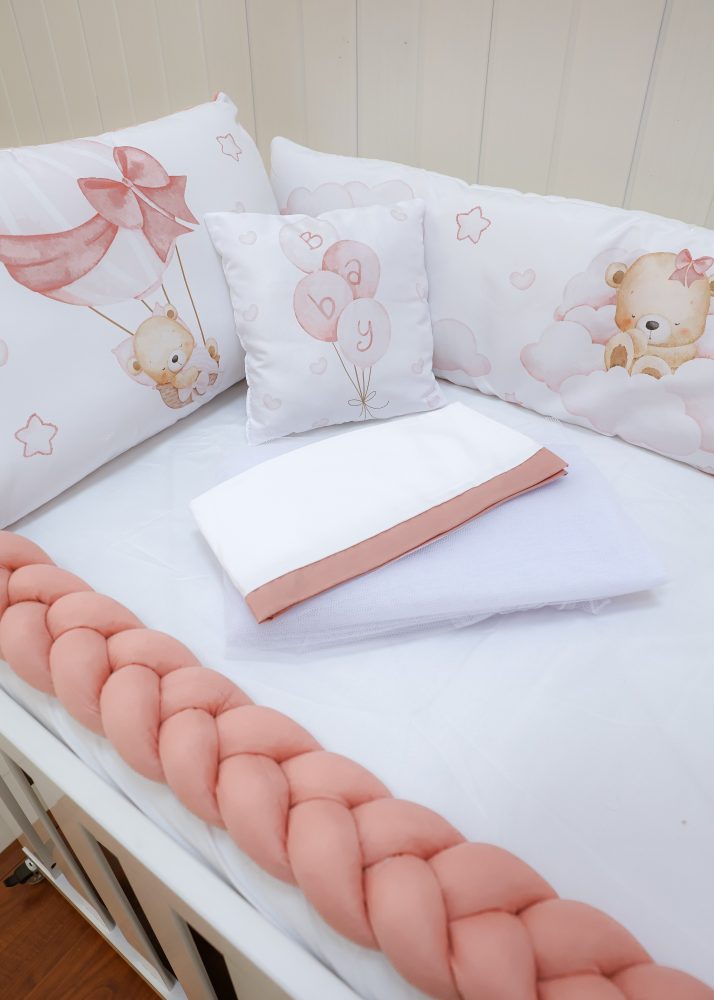 O Kit Protetor de Berço Urso Balão foi desenvolvido para oferecer aconchego, segurança e um toque de delicadeza ao quartinho da bebê. Com estampas exclusivas de urso em estilo aquarela, o kit cria um ambiente suave, divertido e encantador.