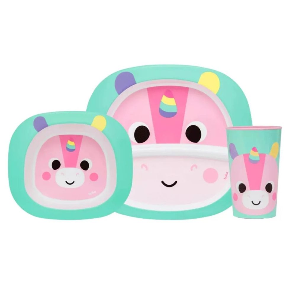 Torne as refeições do seu bebê muito mais alegres com o Kit Refeição Unicórnio Buba! 🍉