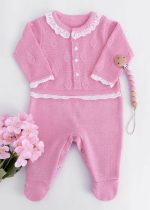 Seja o primeiro a avaliar “Macacão Bebê em Tricô Rosa com Gola Rendada e Pezinho”