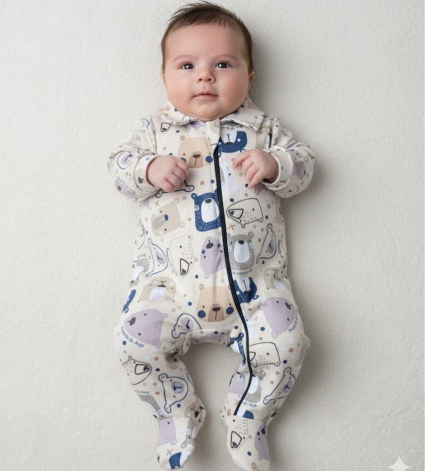 O Macacão Presente de Anjo tem tecido soft extremamente macio e quentinho, ideal para manter seu pequeno confortável nos dias mais fresquinhos. A estampa Mundo dos Ursos traz diversos ursinhos em tons neutros e delicados, criando um visual moderno, lúdico e acolhedor.