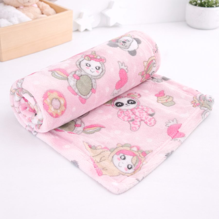 Manta Bebê Microfibra Amiguinhas Rosa 70cm x 1,0m – Bene Casa