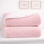 Com design encantador, a manta possui dupla face, sendo um lado liso e outro estampado em poá, oferecendo versatilidade para combinar com diferentes enxovais e ambientes. Seu tamanho de 76 x 100 cm é ideal para uso no berço, carrinho, sofá ou durante passeios.