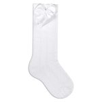 Meia Festa 3/4 Para Bebê Com Laço Cetin Off White