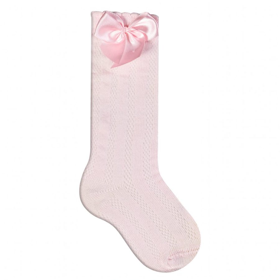 Meia Festa 3/4 Para Bebê Com Laço Cetin Rosa