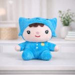 Seu design encantador conta com carinha bordada, acabamento cuidadoso e roupinha em tom azul suave, trazendo um visual meigo e acolhedor. O tamanho é ideal para bebês e crianças pequenas, estimulando o afeto, o vínculo emocional e a sensação de proteção.