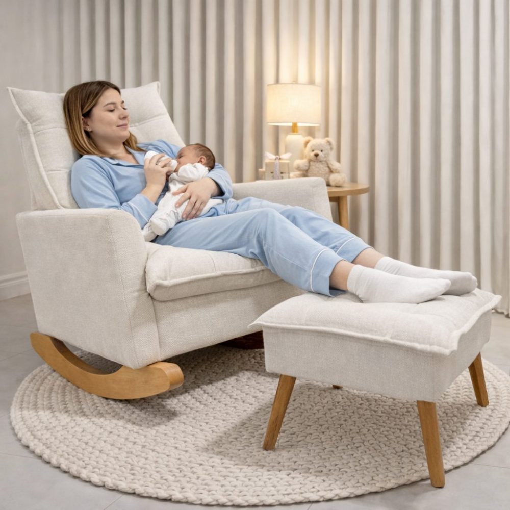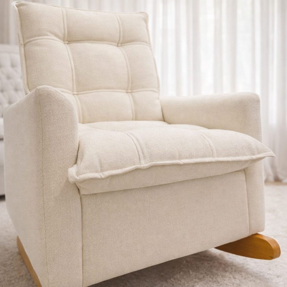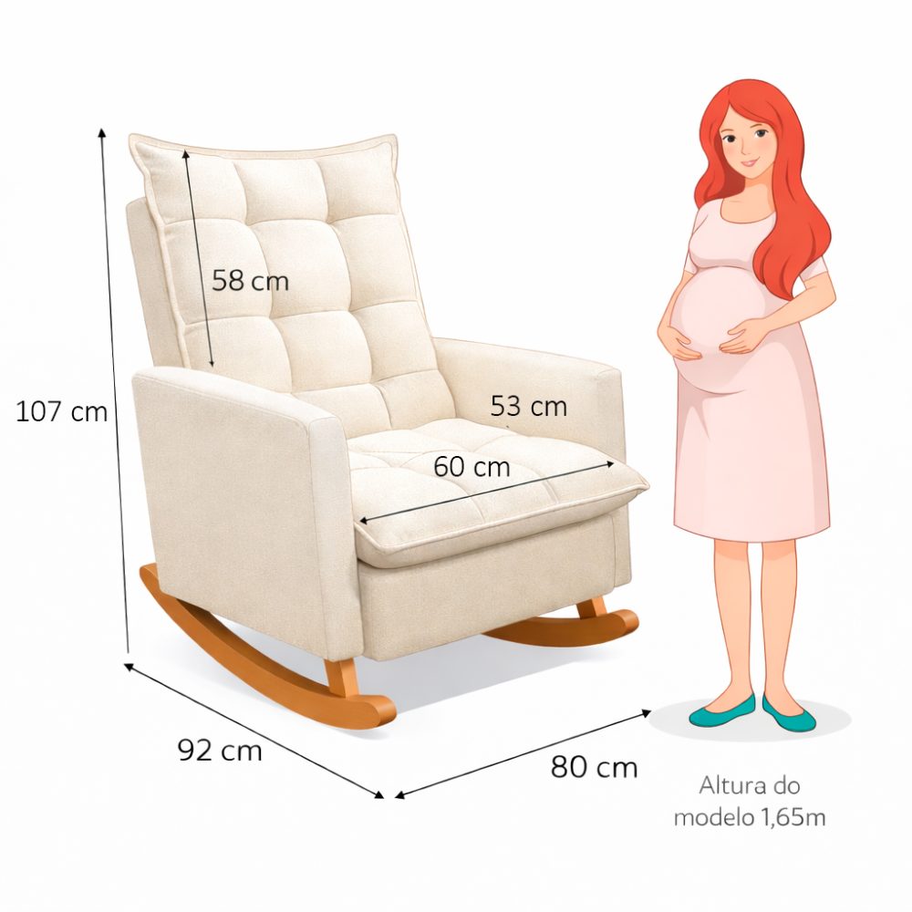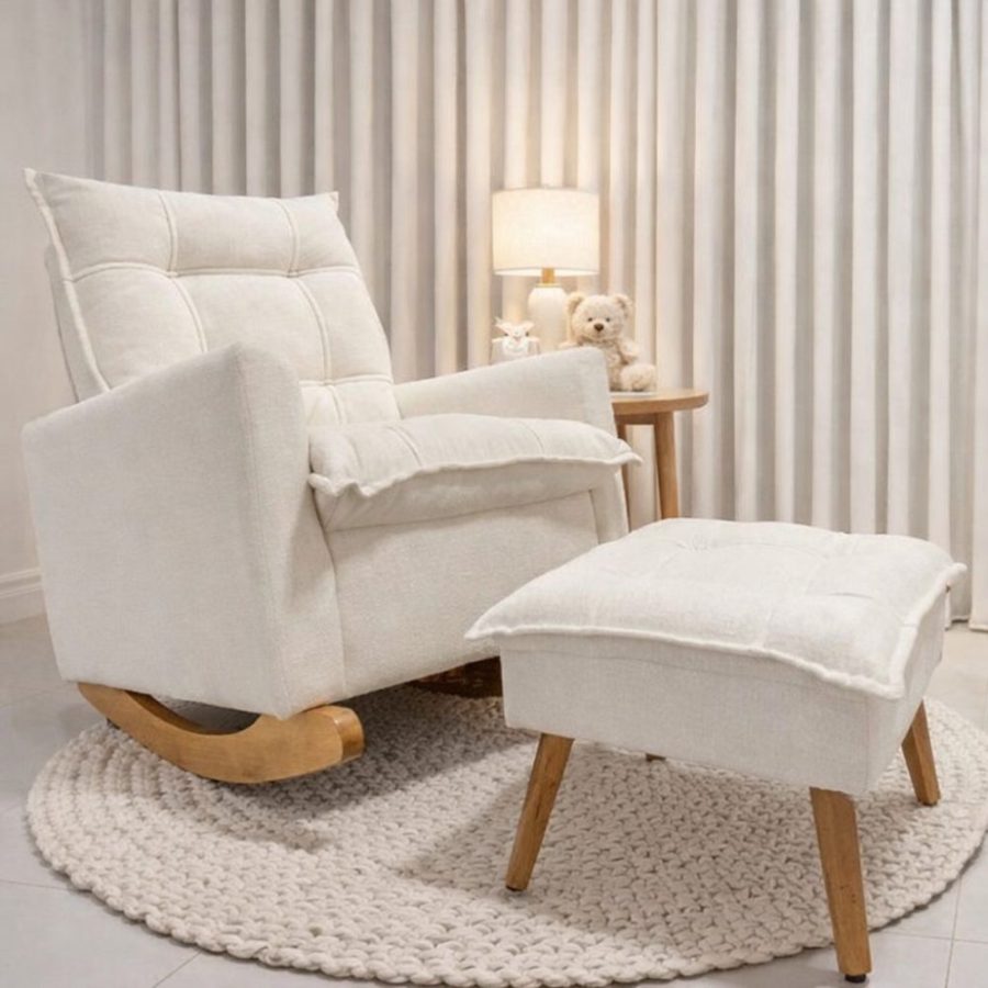 Acompanha puff para apoio dos pés, garantindo melhor postura e conforto prolongado. Estrutura resistente e design sofisticado que combina perfeitamente com o quarto do bebê.