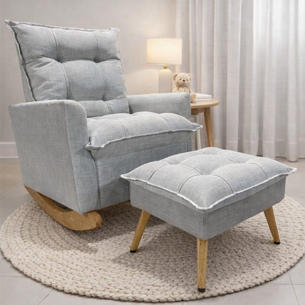Acompanha puff para apoio dos pés, garantindo melhor postura e conforto prolongado. Estrutura resistente e design sofisticado que combina perfeitamente com o quarto do bebê.