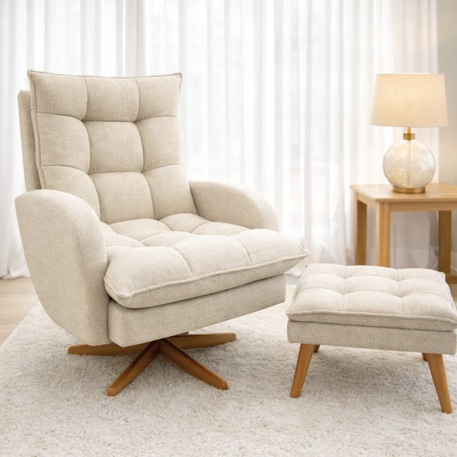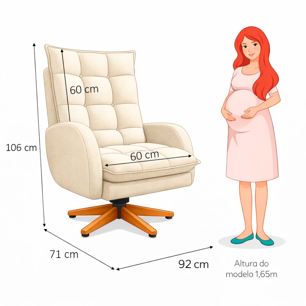 Acompanha puff para apoio dos pés, garantindo melhor postura e conforto prolongado. Estrutura resistente e design sofisticado que combina perfeitamente com o quarto do bebê.