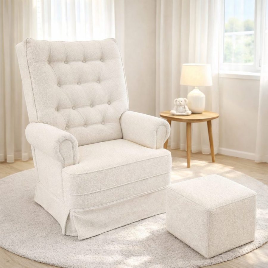 Acompanha puff para apoio dos pés, garantindo melhor postura e conforto prolongado. Estrutura resistente e design sofisticado que combina perfeitamente com o quarto do bebê.