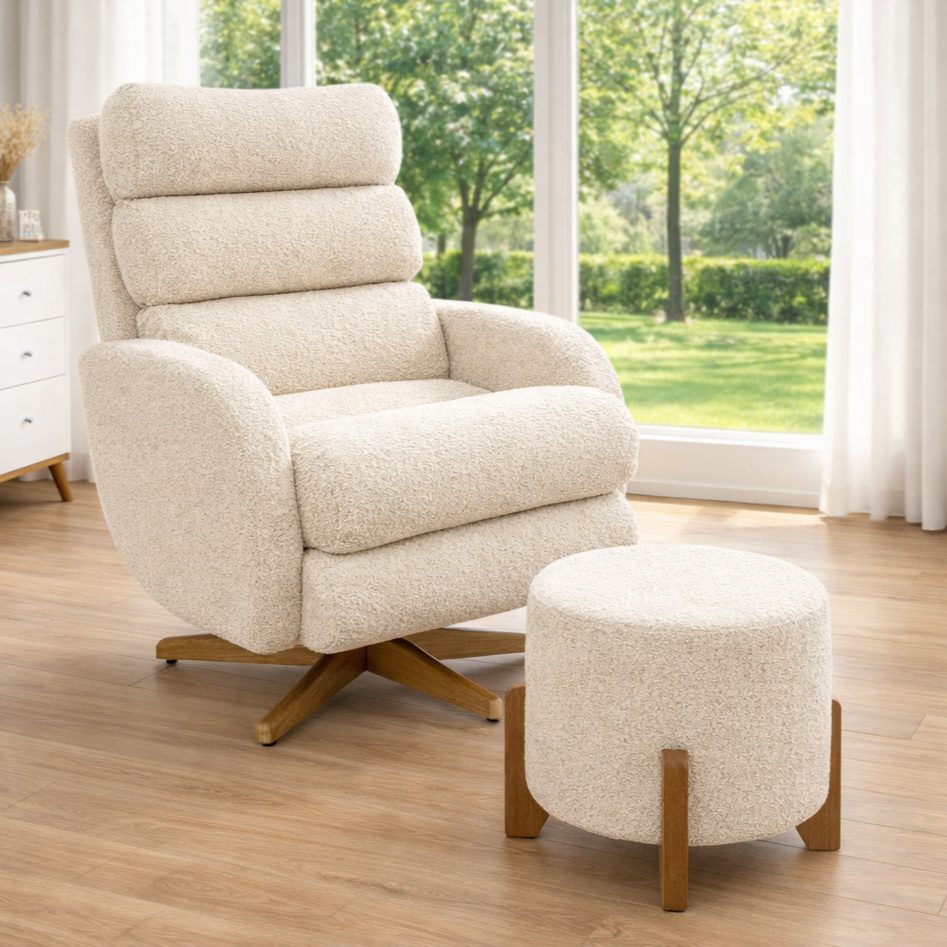 Acompanha puff para apoio dos pés, garantindo melhor postura e conforto prolongado. Estrutura resistente e design sofisticado que combina perfeitamente com o quarto do bebê.